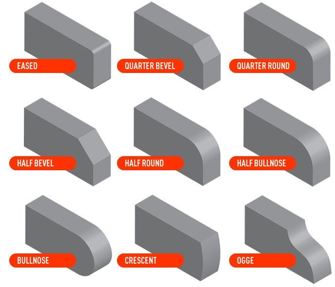 We offer all of our standard edges at no extra charge. Premium edges come at an extra cost per linear foot.